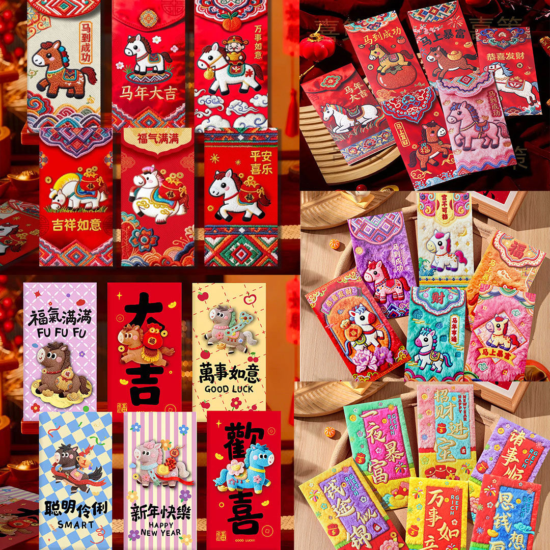 【马年新款】2026马年平面款创意红包仿刺绣风格年压岁春节