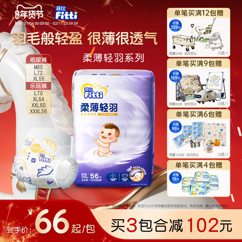 菲比柔薄轻羽纸尿裤MXL拉拉裤XXL尿不湿婴儿超薄透气尿片婴童尿裤