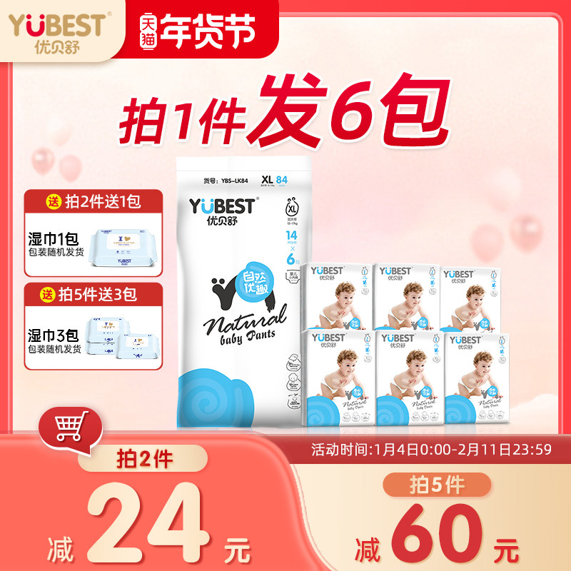 广告优贝舒超薄全包拉拉裤XXXL婴儿纸尿裤透气男女宝宝专用尿不湿大码