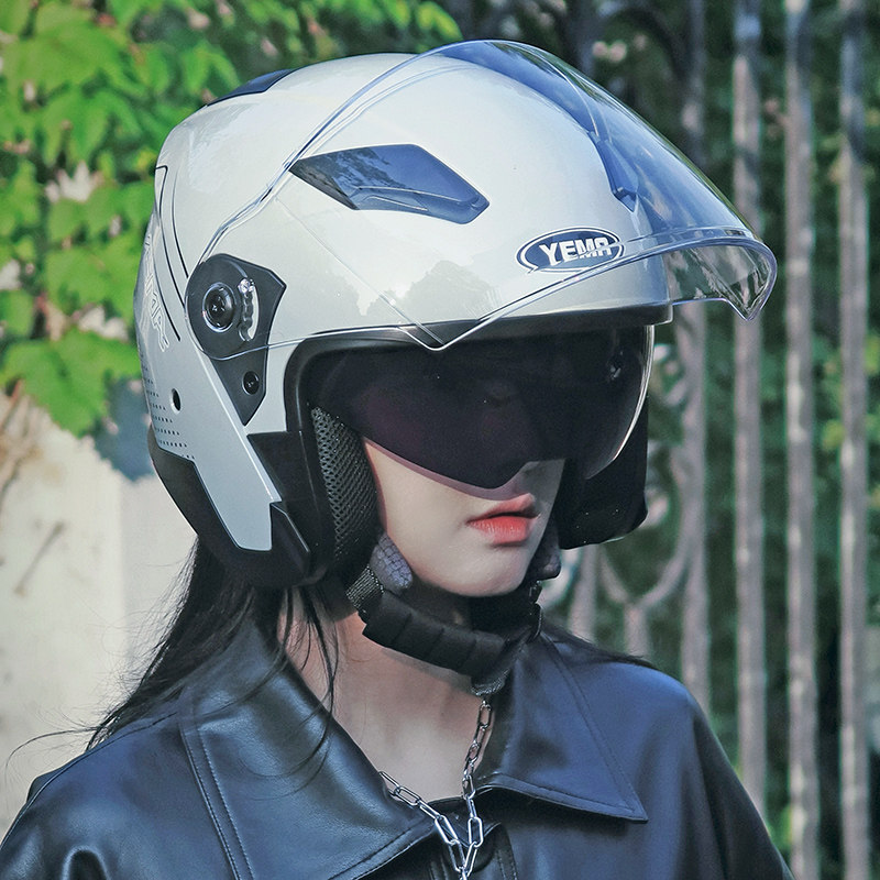 野马头盔摩托车3/4盔男电动车安全帽女秋冬季保暖四季半盔3C认证