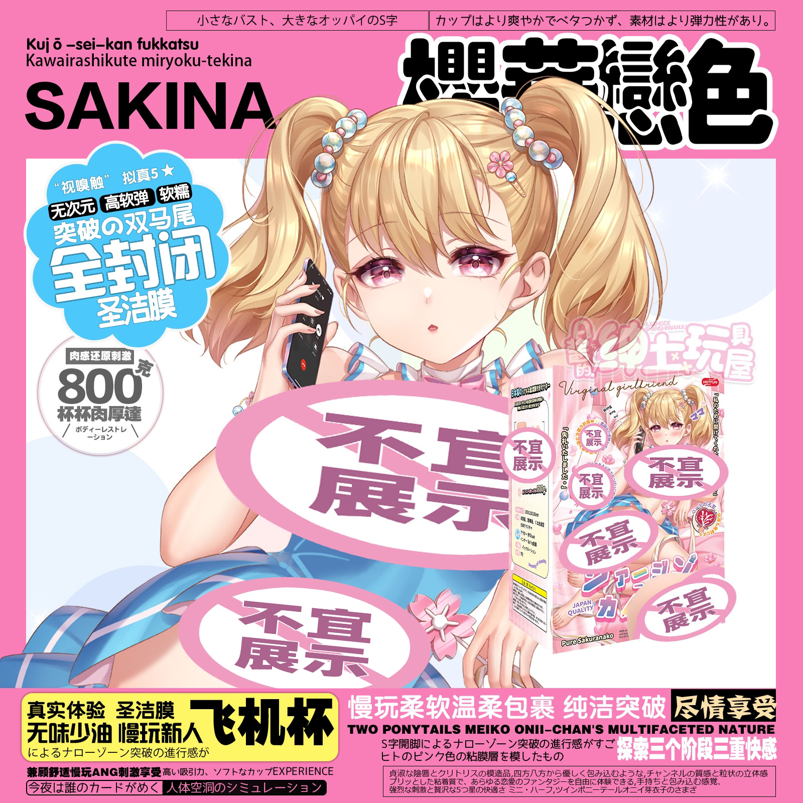 广告A酱玩具HOTFUN樱华恋色飞机杯全封闭纯洁膜慢玩低刺激自慰名器
